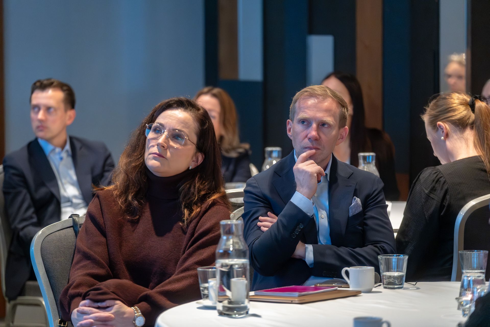 Í lok málþingsins tóku fjórir reyndir stjórnendur þátt í líflegu pallborði. Í umræðunum kom meðal annars fram mikilvægi þess að stjórnir séu vel undirbúnar undir fjölbreyttar sviðsmyndir og að þær viðhaldi stöðugri aðlögun að síbreytilegu alþjóðlegu rekstrarumhverfi. Þá lögðu þau einnig mikla áherslu á mikilvægi þess að fyrirtæki sjá fyrir þau tækifæri sem liggja í sjálfbærni þegar kemur að alþjóðlegu samkeppnisforskoti. Í pallborði voru Benedikt Gíslason, bankastjóri Arion banka, Tanya Zharov, aðstoðarforstjóri Alvotech, Heiðrún Jónsdóttir, framkvæmdastjóri SFF og stjórnarkona í Heimum, og Kristján Davíðsson, stjórnarformaður Brim og stjórnarmaður hjá Landsbankanum. Reynir Smári Atlason, forstöðumaður sjálfbærnimála hjá Creditinfo og stjórnarmaður Festu, stýrði pallborðsumræðum.