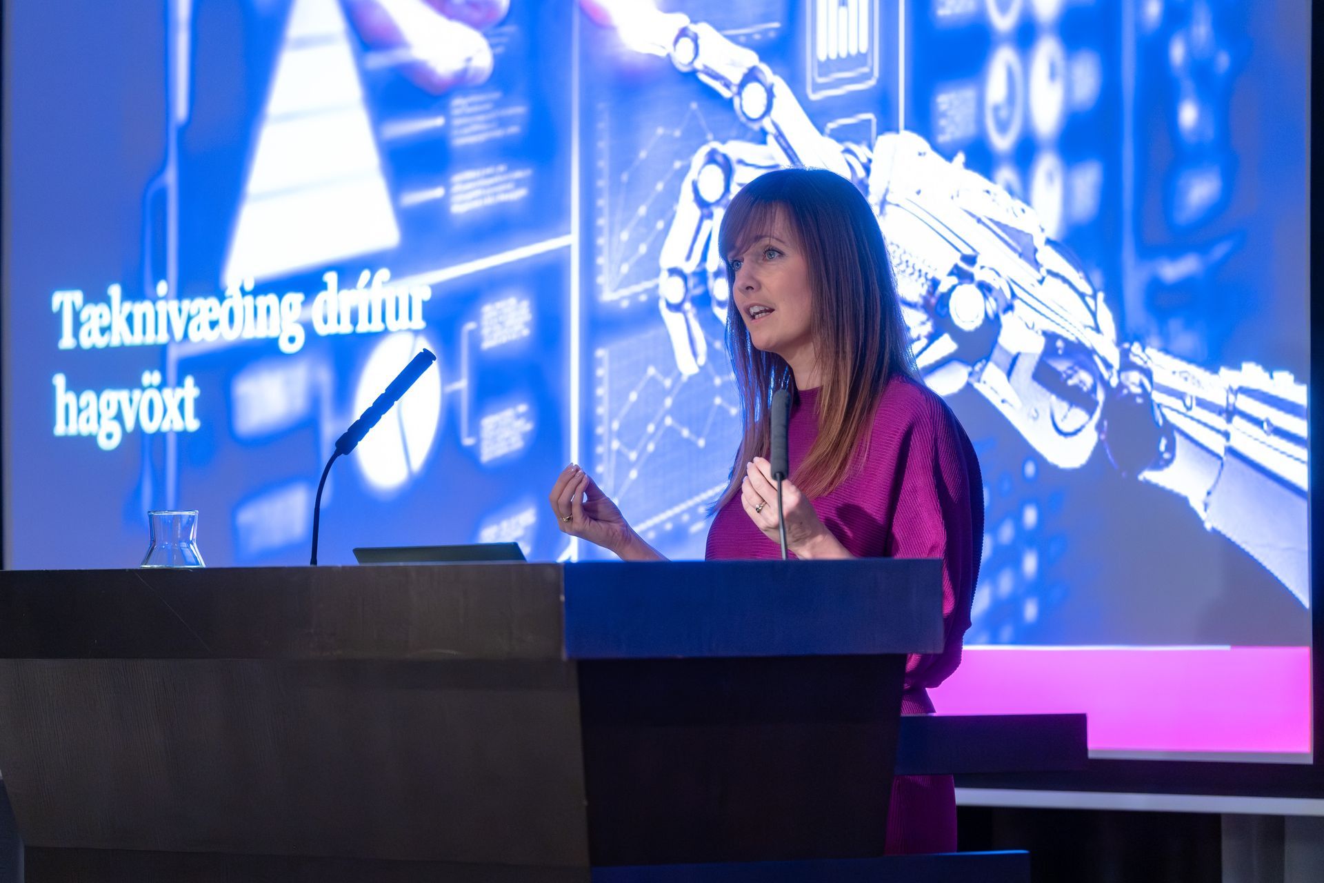 Hildur Einarsdóttir, forstjóri Advania, fjallaði um áhrif gervigreindar og tæknilausna á ákvarðanatöku fyrirtækja og lýsti því hvernig tækniframfarir og alþjóðlegar áskoranir móta nú umhverfi fyrirtækja meira en nokkru sinni fyrr. Hildur lagði áherslu á að það væri mikilvægt að standa vörð um málaflokkana sem falla undir sjálfbærni og að tækifæri Íslands til að nýta tækniþróunina til að styrkja samfélagslega innviði væri einstök, ef rétt væri haldið á spilunum.